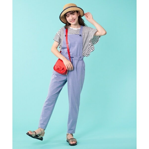 【150〜160cm】ピッケストライプサロペット(ブルー)/組曲 キッズ(KUMIKYOKU KIDS)