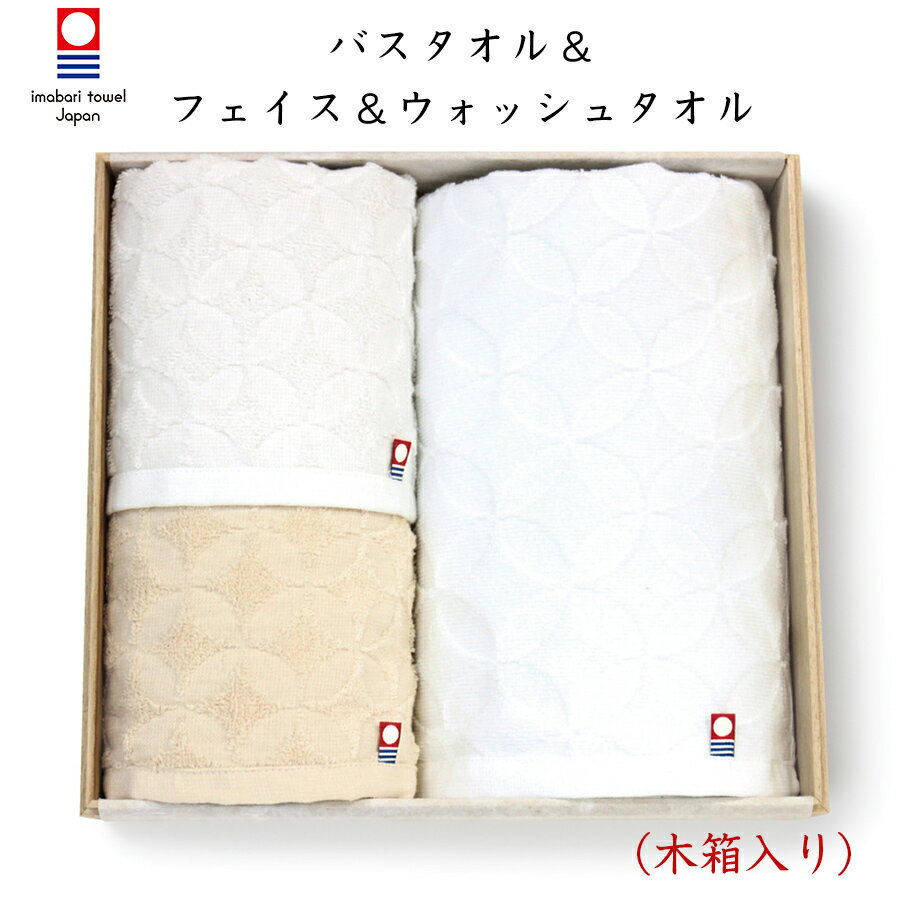 ギフト・プレゼントにも◎【七宝つむぎ タオルセットC(木箱入)】今治タオル(バスタオル&フェイスタオル等3点セット)七宝柄 ホワイトとベージュ 日本製【apex】【SOERU-ソエル-】 新生活 御祝い お祝い 入学祝い 就職祝い 退職祝い