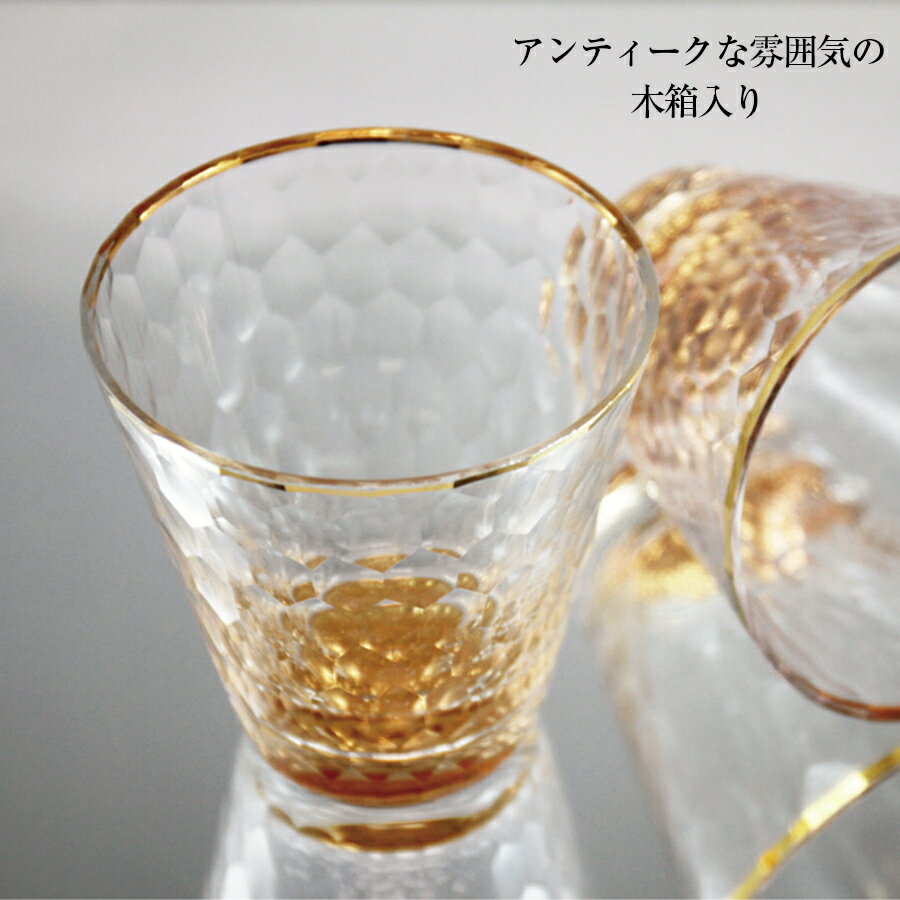 ギフト・プレゼントにも◎【ルミナス グラス(アンティーク風木箱入り)】18Kが施されているおしゃれなグラス食器【apex】【SOERU-ソエル-】 新生活 御祝い お祝い 入学祝い 就職祝い 退職祝い