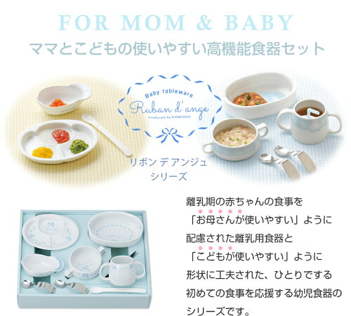 【リボン・デ・アンジュ・ベビー食器セット】 男の子・女の子にもおすすめな、やさしいパステルカラーの食器ギフトセットです。