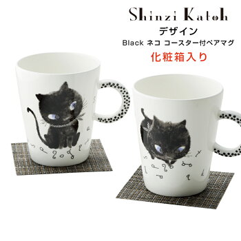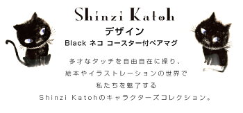 ギフト・プレゼントにも◎ShinziKatohマグ【Black ネコ コースター付ペアマグ】(化粧箱入り) 【小倉陶器】【SOERU-ソエル-】 新生活 御祝い お祝い 入学祝い 就職祝い 退職祝い